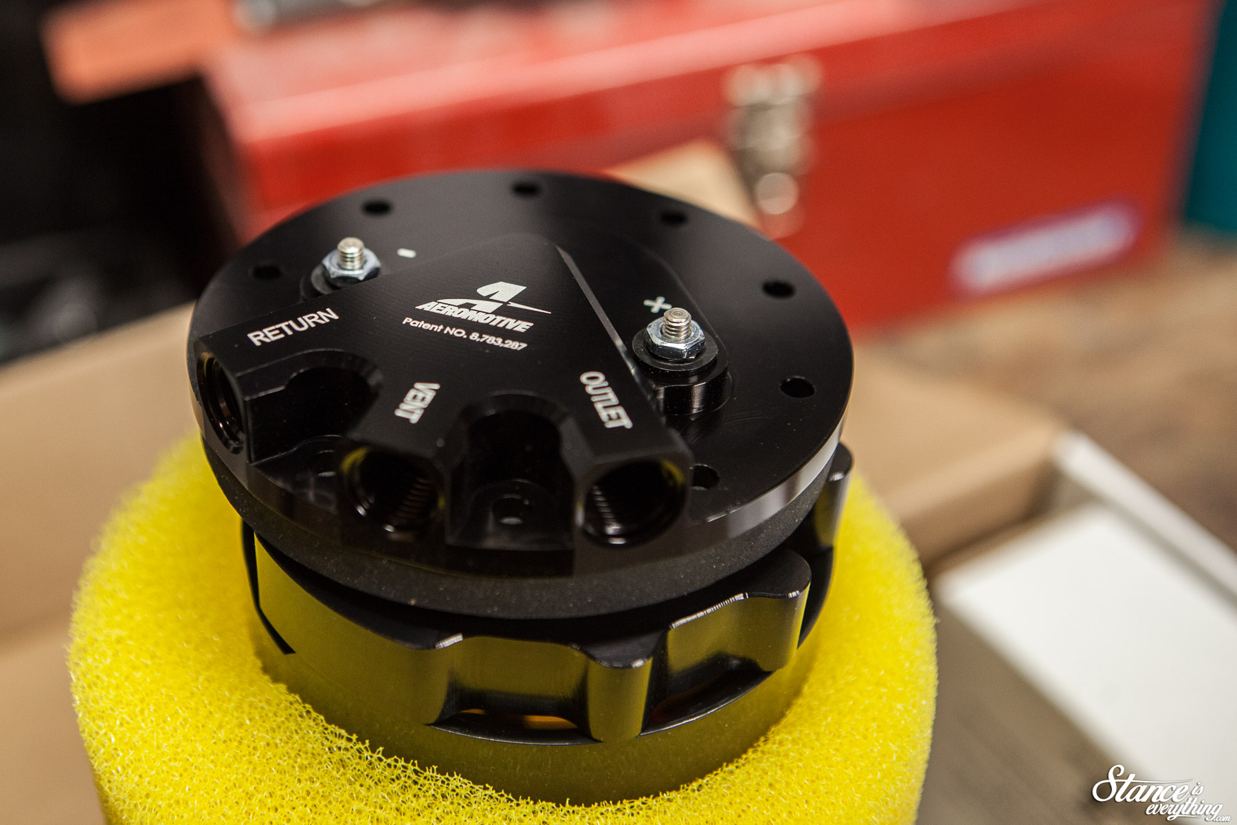 After consulting a few friends the Phantom Stealth drop in fuel system by Aeromotive seemed like the easiest route to take. Drill a few holes of various sizes and you’re pretty well done, and being a drop in I didn’t have to find any additonal space to mount it.
