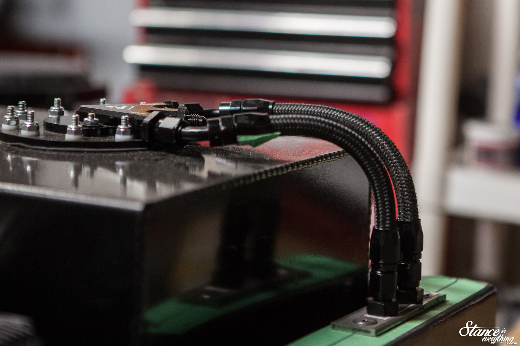 To keep things nice and clean I opted to plumb it all with a combination of Russell and Vibrant -6 AN fittings depending on the union. I used Russell mostly but I preferred Vibrant’s 90 degree fittings.