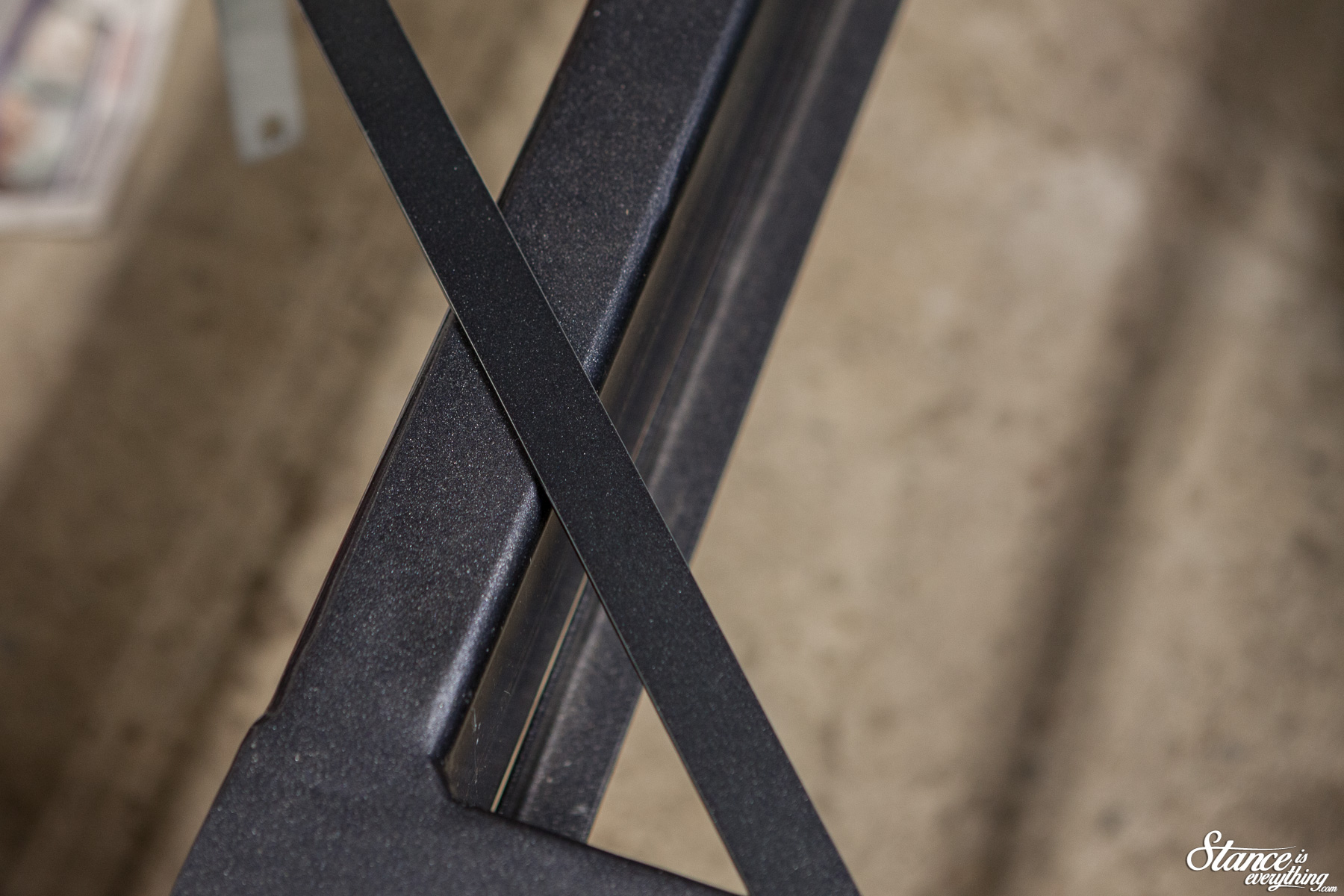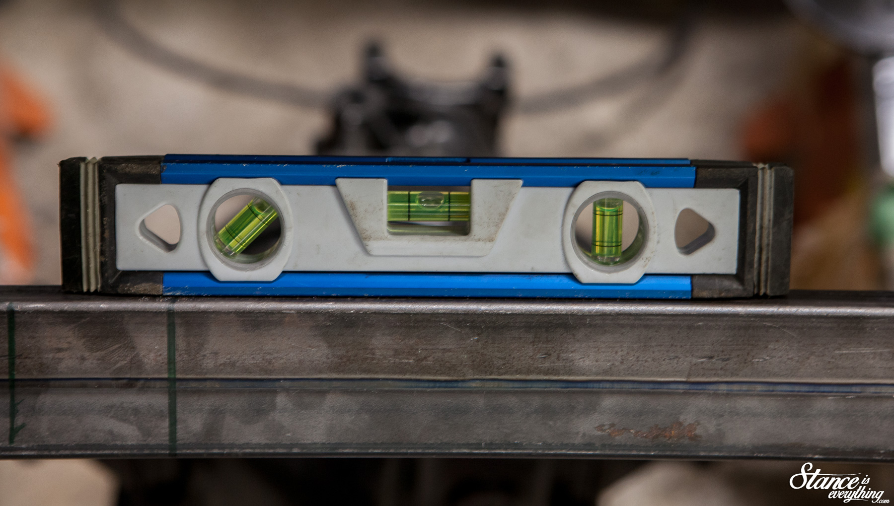 A quick solve for this was spacing the upper tank out from the cross member just enough to run the related plumbing and wiring. Above is the necessary spacing mocked up with wood and the aforementioned box steel/angle iron test piece.