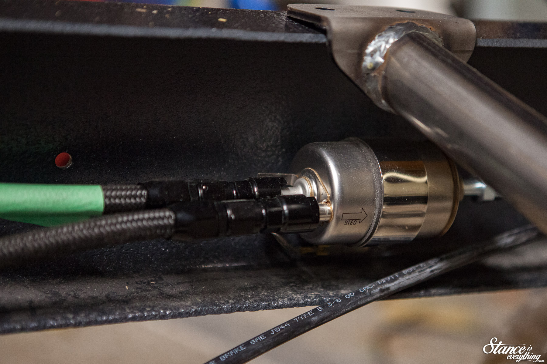 Two 45s at the fuel pump, and straight fittings at the end of the hose link everything together. For my first time running lines of this nature I am pretty happy with how it all turned out.