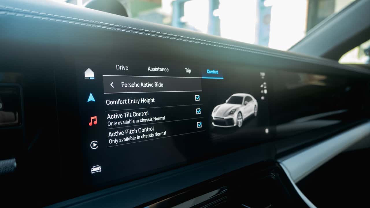 That V-6 is surprisingly musical, too, and where I was left wanting a bit with the engine on its own in the standard Panamera, it’s a perfect pair to the hybrid system here. The other big benefit of going for the E-Hybrid is a piece of technology I’m particularly fascinated with (and one not available on the GTS): Porsche Active Ride.