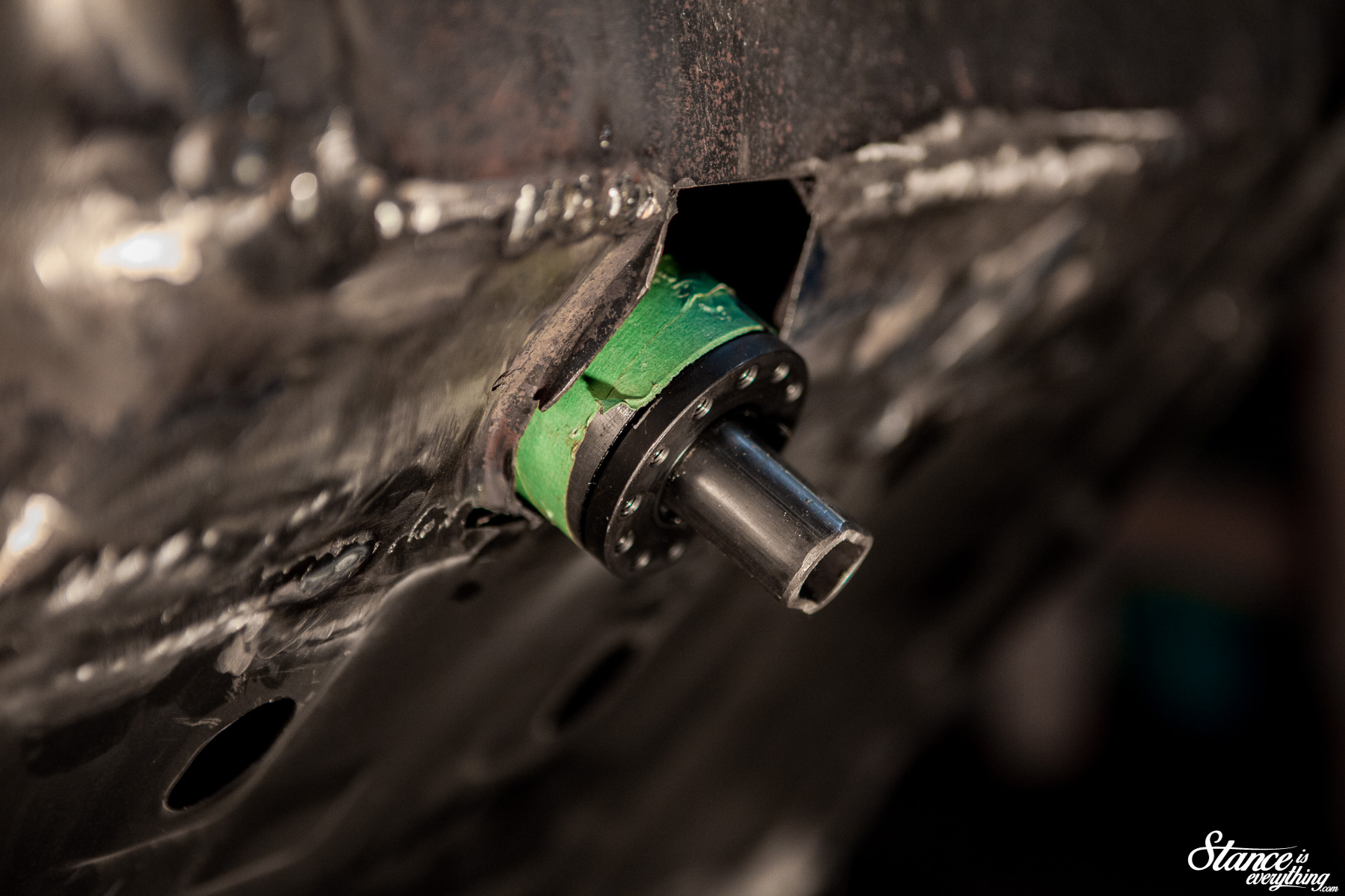 The orientation above also aligned the steering column perfectly with the OEM firewall pass through. In a standard configuration I’m sure this would have been fine, but in my case, the OEM location was looking pretty sorry for itself.