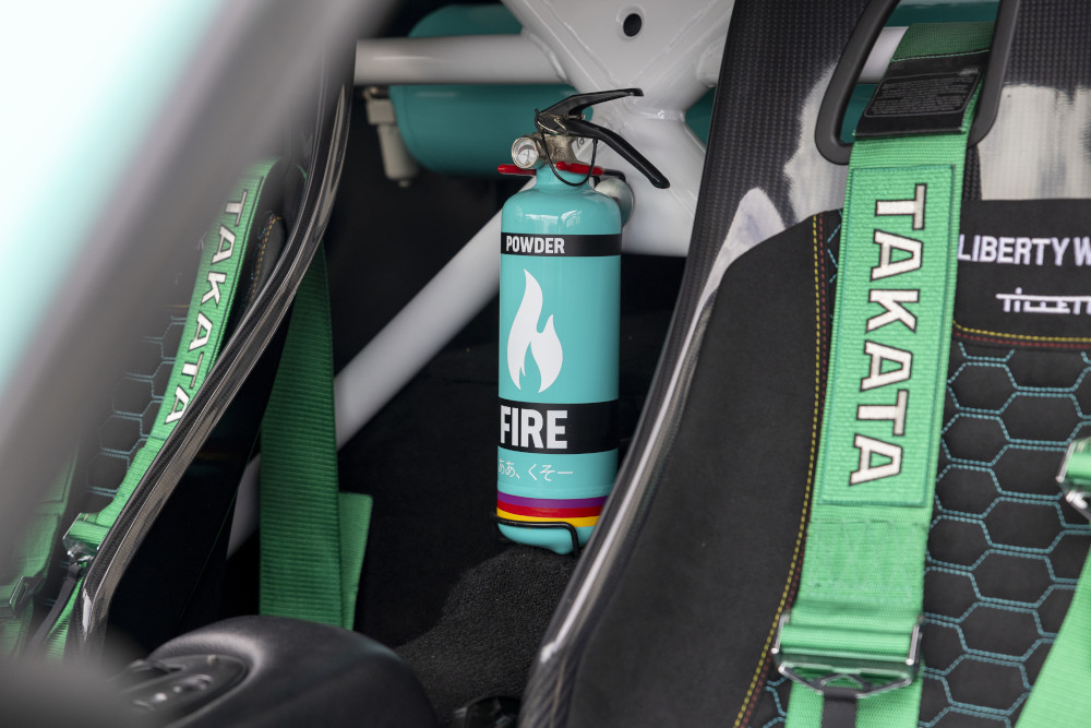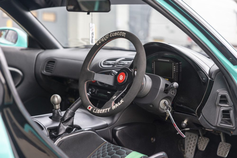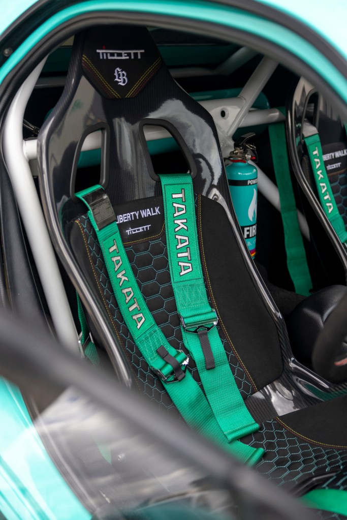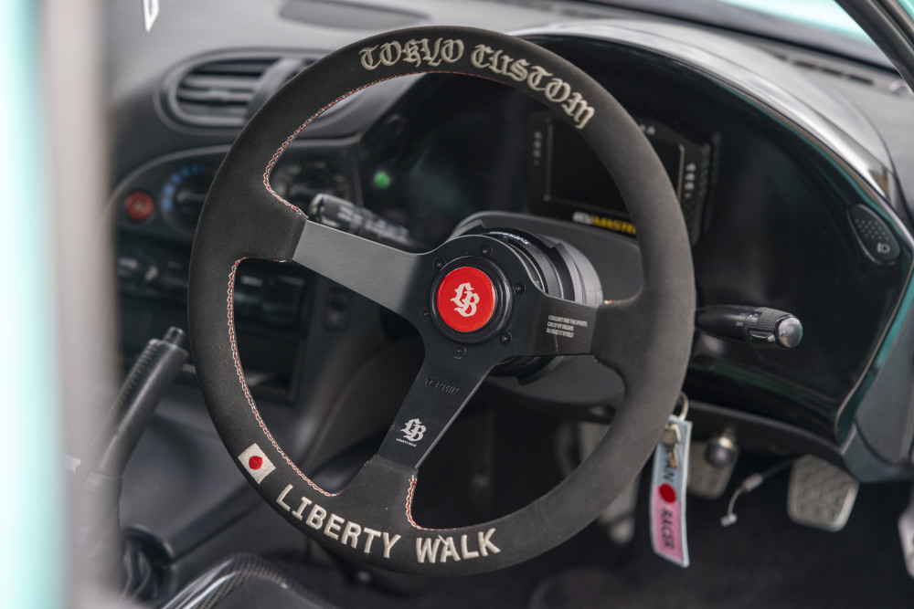 • Interior: Tillett B10 carbon seats; Liberty Walk steering wheel (1 of 100); JP Cages rear roll cage.