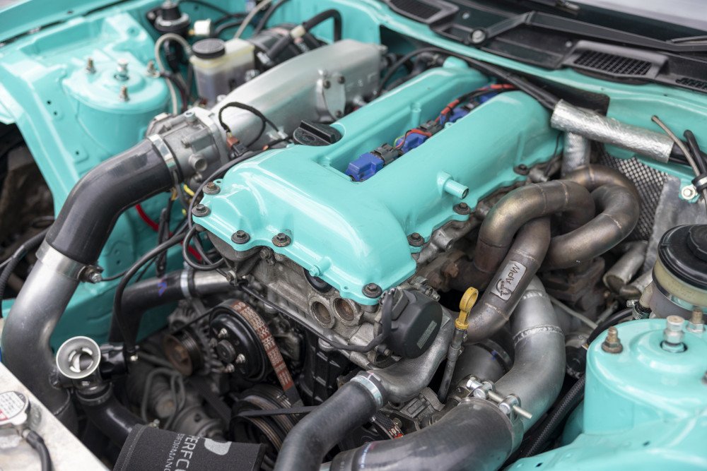 Pop the vented bonnet and purists double-take: no rotary! In its place, a Nissan SR20DET – a decision that lights up every comments section. The logic is brutally practical: rotaries love regular use; show cars live on the road and on stands. For a machine that has to travel, idle on stages and fire up on cue, the SR20 delivers tough, tunable reliability without killing the theatre.