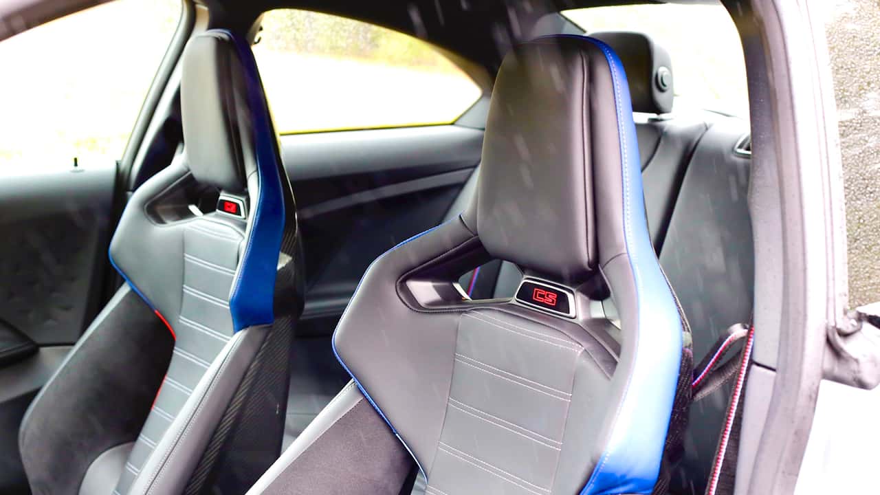 Overall, the CS’s suspension and steering tweaks made for a top-notch experience. Its sharp steering, stiffer springs, and spicier alignment yielded excellent yaw response; turn-in was solid, steering was incredibly direct, yet the muscular coupe never felt too twitchy or nervous. Even on a short drive through local rural roads that were far from glass-smooth.
