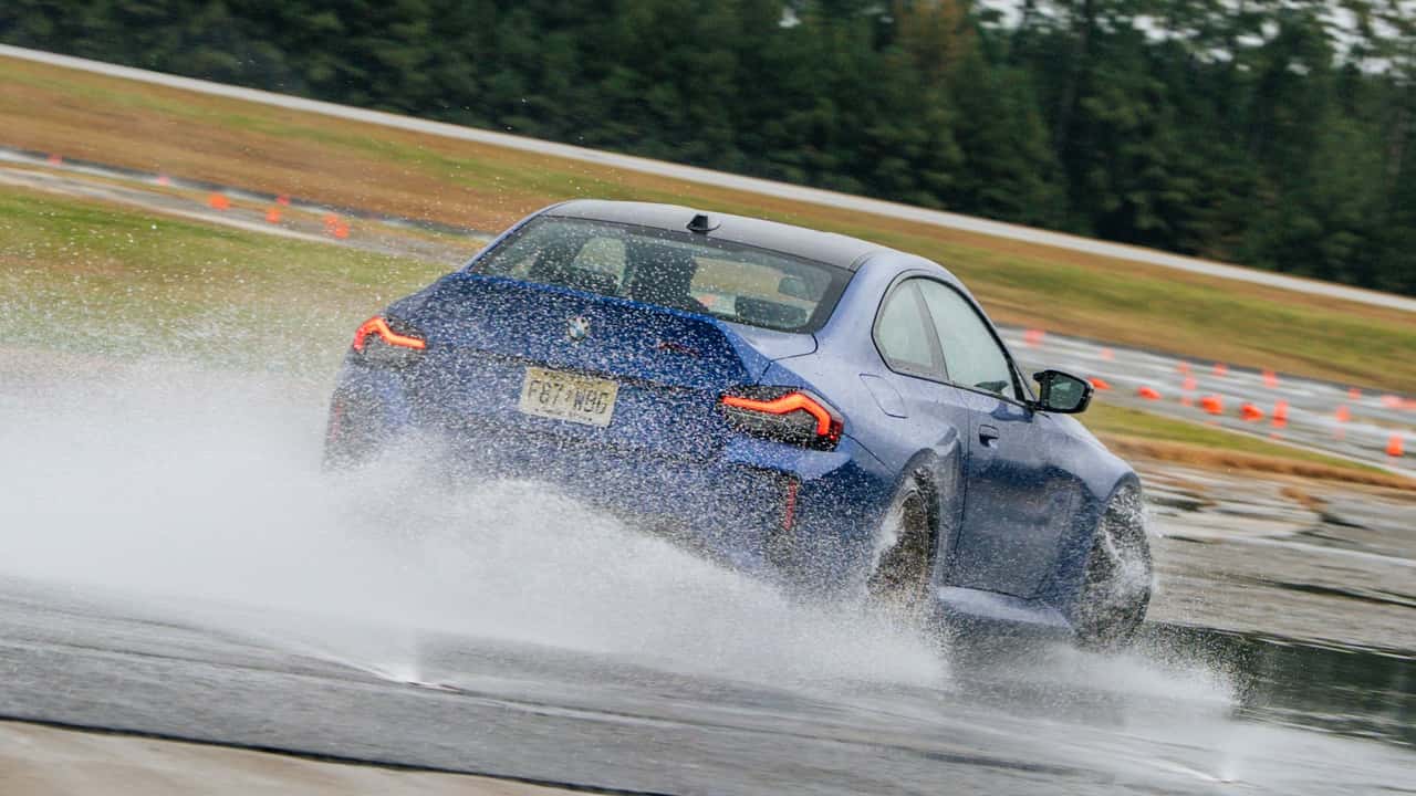 All that body movement was exacerbated by rainy conditions for most of the day, which also lent well to figuring out BMW’s 10 levels of M Traction Control. In sub-60-degree conditions and the windshield wipers on full blast, having it cranked up for maximum slip restriction on the long test track made the CS feel confident and grippy while ripping along on 275/35-front and 285/30-rear Michelin Pilot Sport 4Ss.