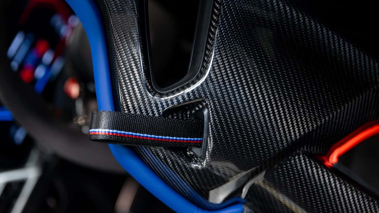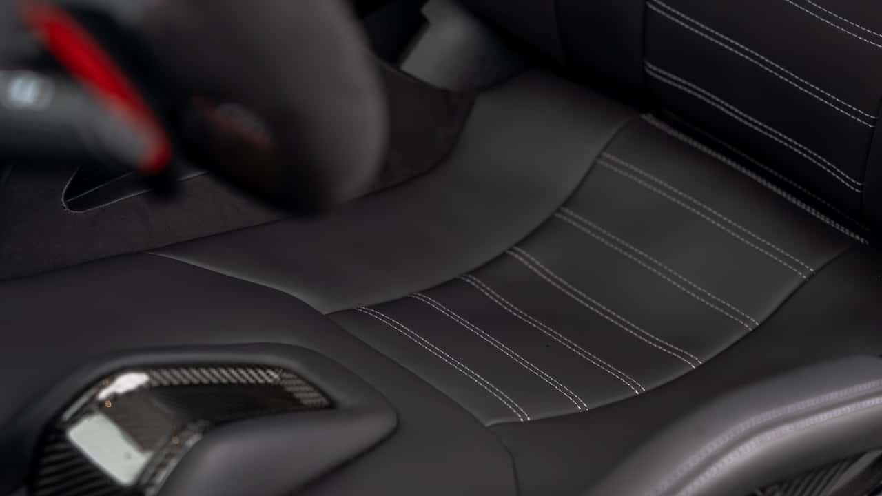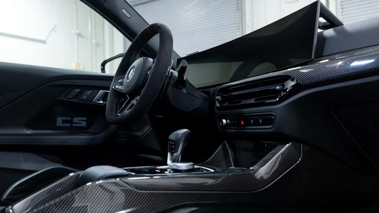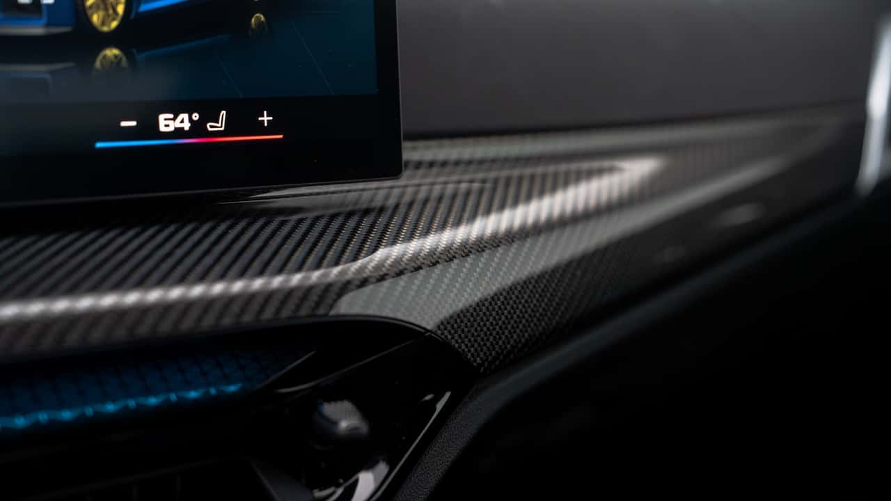 The rest of the interior is littered with—you guessed it—carbon fiber. It also features soft leather, dense piano black plastic, and a light sprinkling of Alcantara throughout.