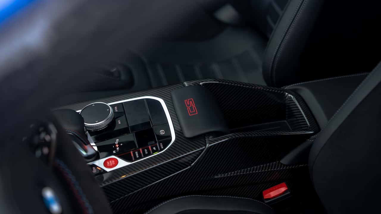The mechanical differences between the CS and standard M2 include a mix of parts bin upgrades and a bunch of ones and zeros. The CS has slightly firmer spring rates, which lower the ride height by 8.0 millimeters. Its alignment is a bit more camber-rich (BMW personnel didn’t have exact figures on hand). Bushing material, suspension top hats, control arms, and other common areas of performance upgrades are the same as the standard model, though it shares its transmission mount and dampers with the M4 CSL—the former is found on the M4 GT4 race car, too.