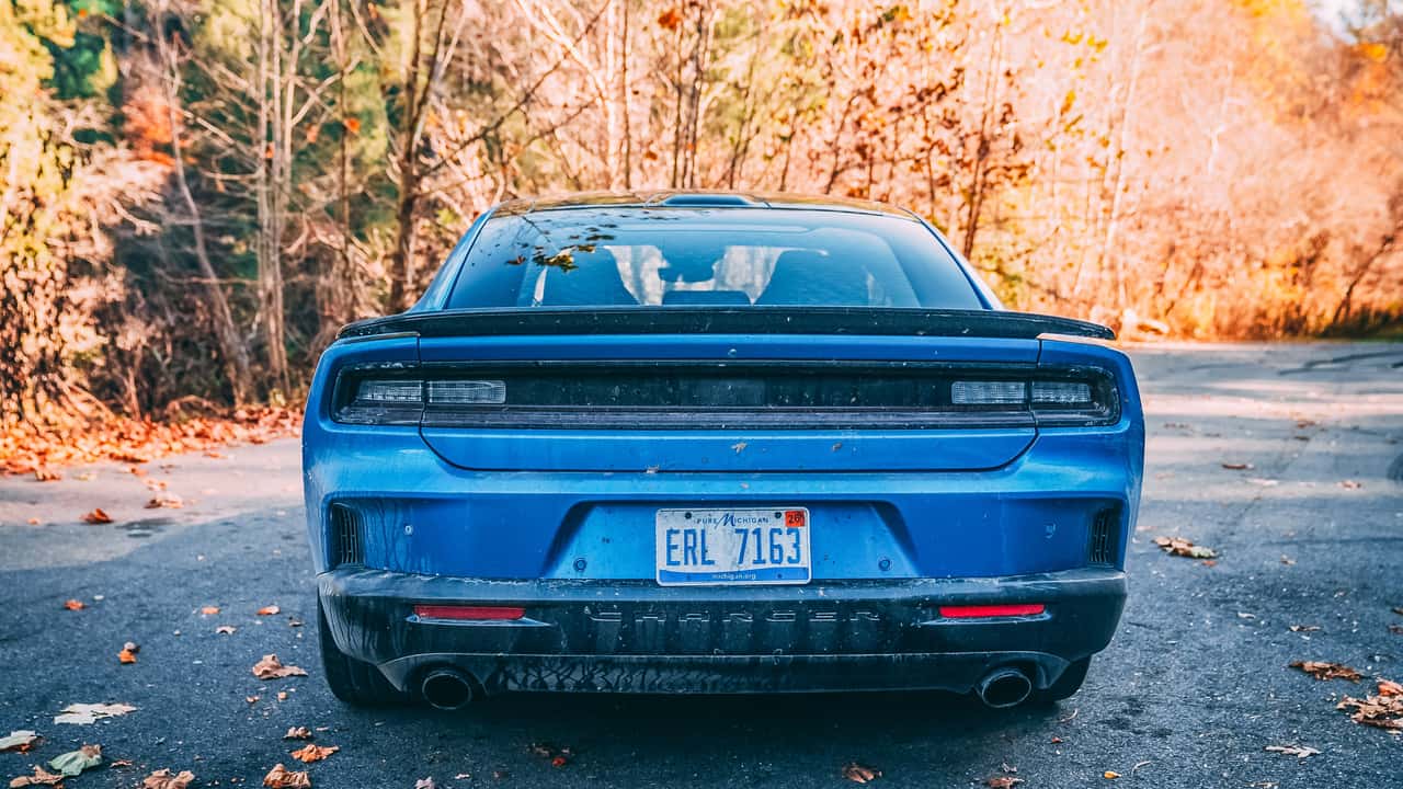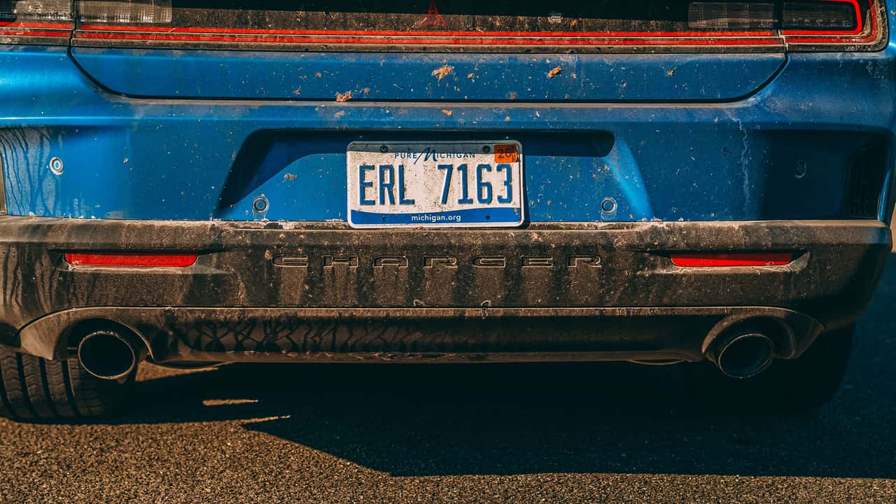 Slide around to the back and, well, if you can’t tell from this angle, I suggest you schedule an eye appointment. There’s a set of exhaust pipes jutting from the rear, and they sit under embossed Charger lettering. On the electric version, the wording there says Daytona.