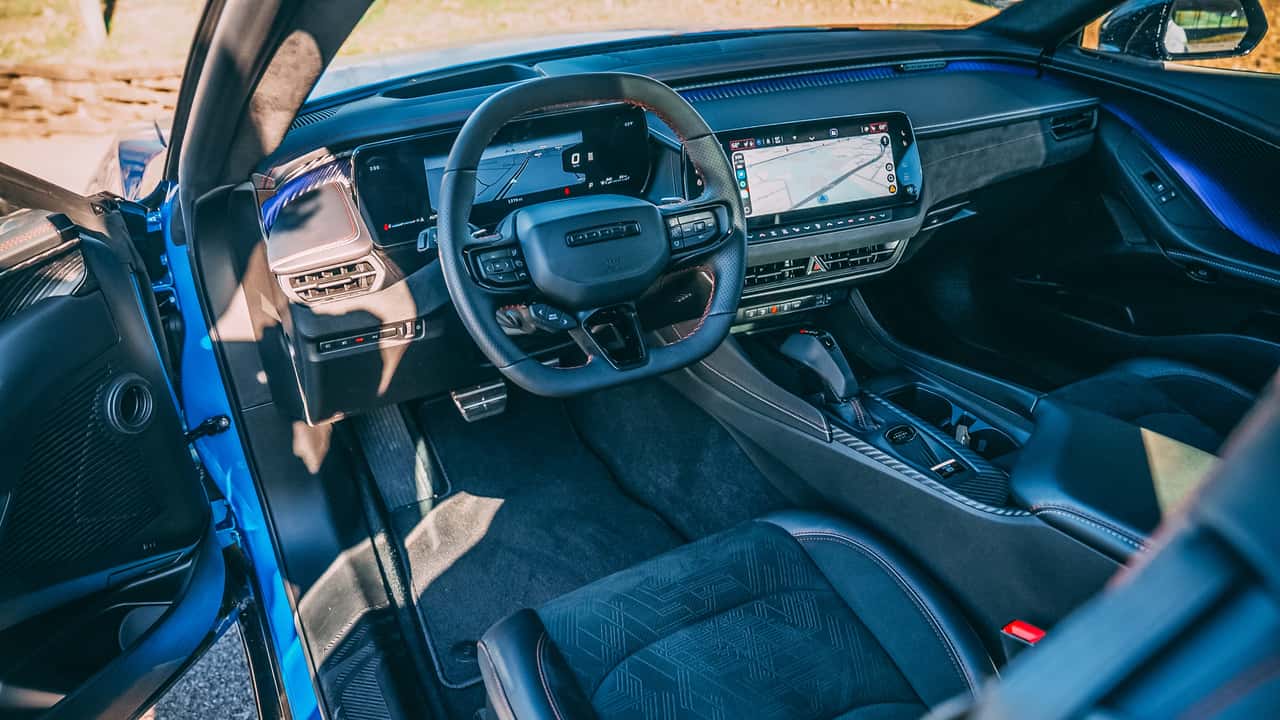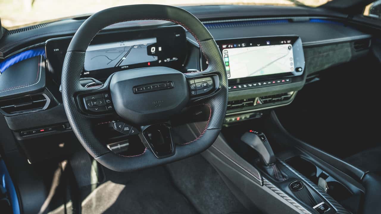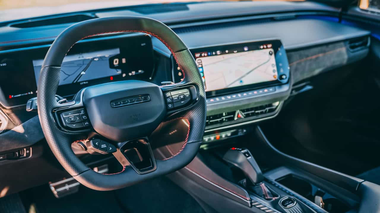 Regardless, the cabin space is a driver-centric atmosphere thanks to the layout of the two screens and the design of the center console. A 10.3-inch driver display is standard, but the wider 16.0-inch screen arrives on the Plus package model. Both versions feature a 12.3-inch display in the center, and Uconnect 5 handles infotainment duty.