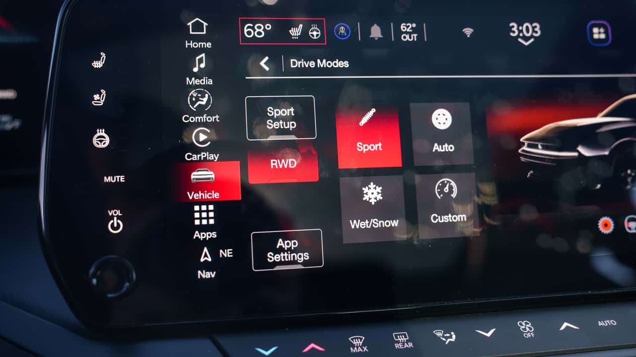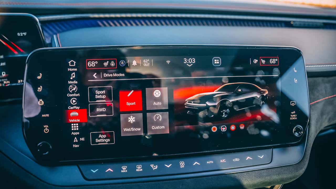 Yes, AWD is standard, but this car also comes with a front-axle disconnect system that sends 100% of the power out back. Simply tick Sport Mode and press the button for RWD to unlock donuts, drifts, burnouts, and brake stands at your beck and call. In fact, Line Lock is a standard feature on the Sixpack model. Budget for more tires.